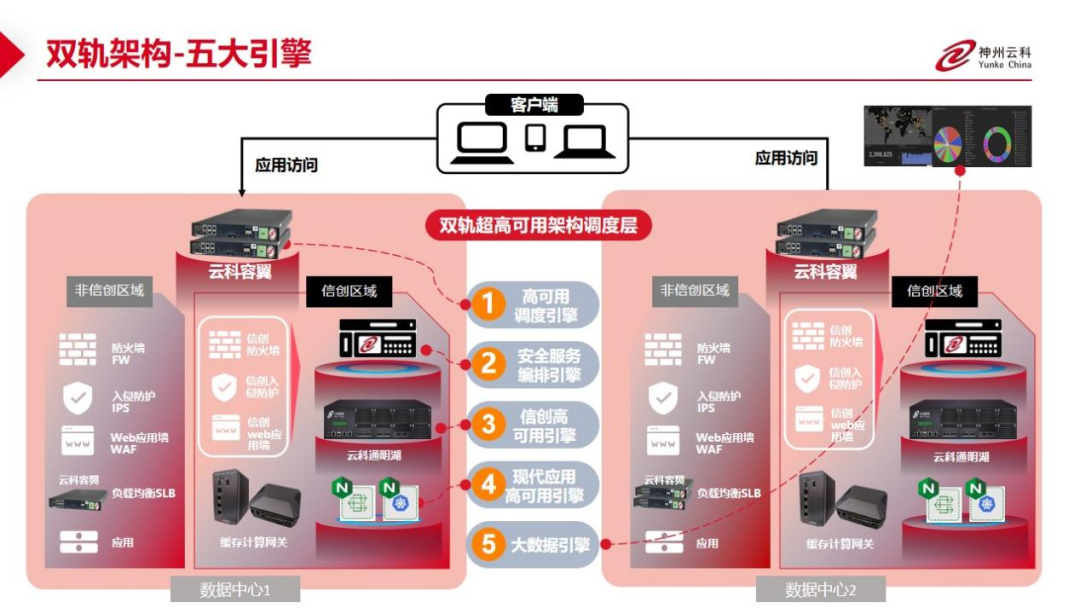 数据中心架构在自主创新的过程中分解为现有架构的非信创区和信创区的两个业务区域,在每个数据中心分为信创区和非信创区后,在两个区域之间的跨区跨域协同方法,神州mksport体育通过5大引擎实现多层次的应用可持续性实践。