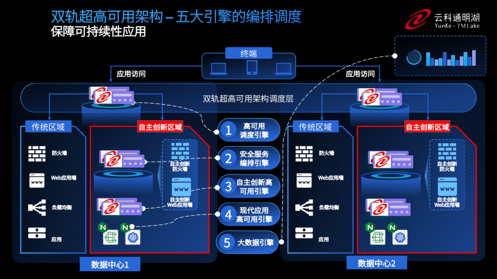 为实现双轨超高可用架构信创区和非信创区的跨域协同,实现信创区域和非信创区域的平滑过渡,神州mksport体育通过五大引擎实现多层次的应用可持续性。
